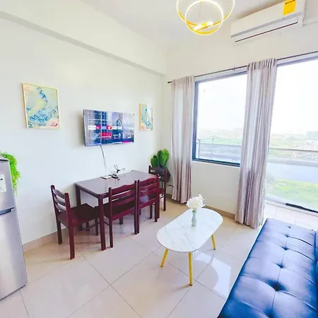 Shore 2 Tower 1 2 Bedroom Near Moa City View apartment offers a balcony, a living room, and a well-equipped kitchen, as well as comforts like climate control. At this apartment, guests will enjoy the convenience of toiletries in the bathroom. Furthermore, a shower is available.